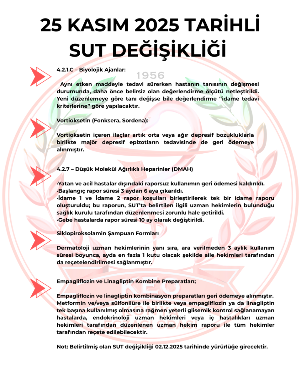 25.11.2025 TARİHLİ SUT DEĞİŞİKLİĞİ HAKKINDA