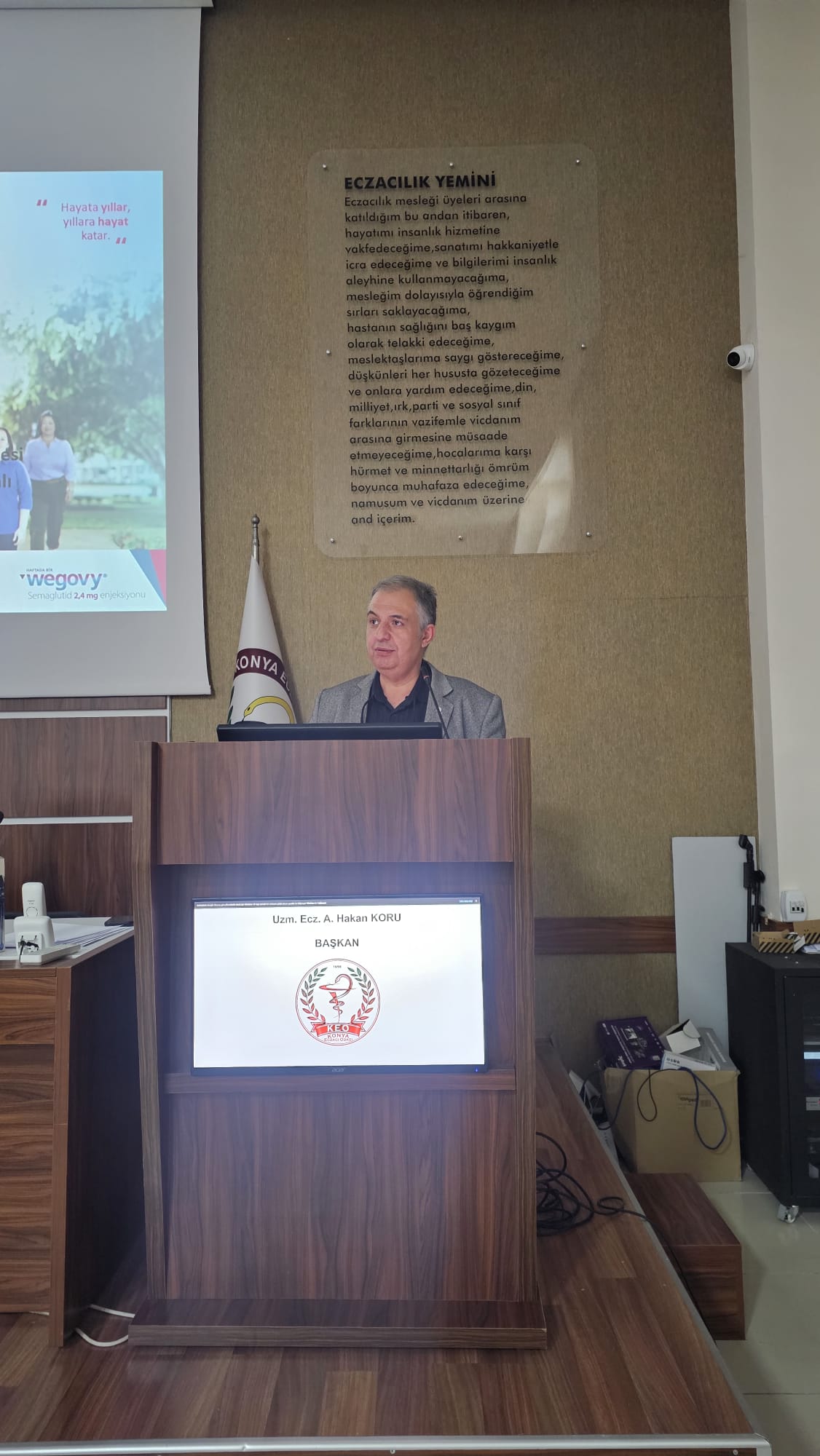 Prof. Dr. Melia KARAKÖSE’ ye konuşmacı olarak katıldığı “Semaglutid ile Obezitede Yeni Hedef: Etkili Kilo Kaybı ve Kardiyovasküler Koruma” eğitimi Odamız Konferans Salonunda gerçekleşmiştir. Eğitim Oda Başkanımız Uzm. Ecz. A. Hakan KORU’ nun konuşması ile başlamıştır. Eğitim sonunda Prof. Dr. Melia KARAKÖSE’ ye şehrimizin bir hatırası olarak semazen fügürleri takdim edilmiştir.