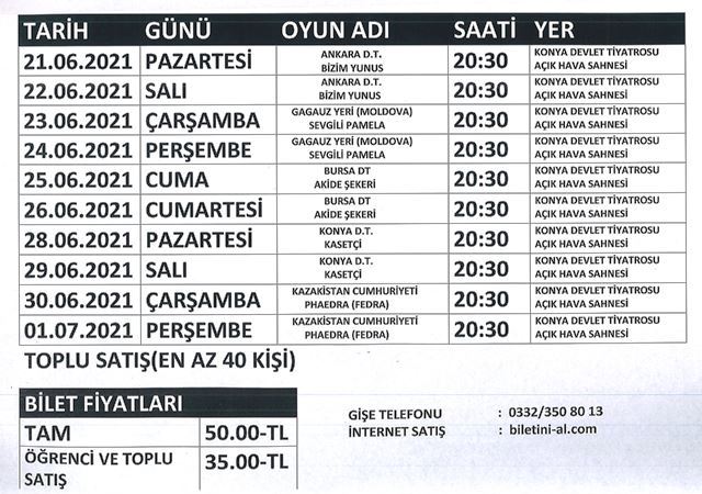 Kültür Bakanlığı tarafından düzenlenen 13. Uluslararası Bin Nefes Bir Ses Türkçe Tiyatro Yapan Ülkeler Festivali ile ilgili ayrıntılar aşağıda bilgilerinize sunulmuş olup gösterilere katılmak isteyen meslektaşlarımız için bilet fiyatı 35 TL olarak belirlenmiştir.