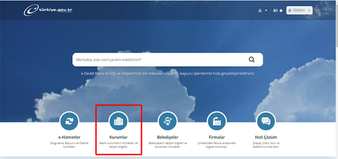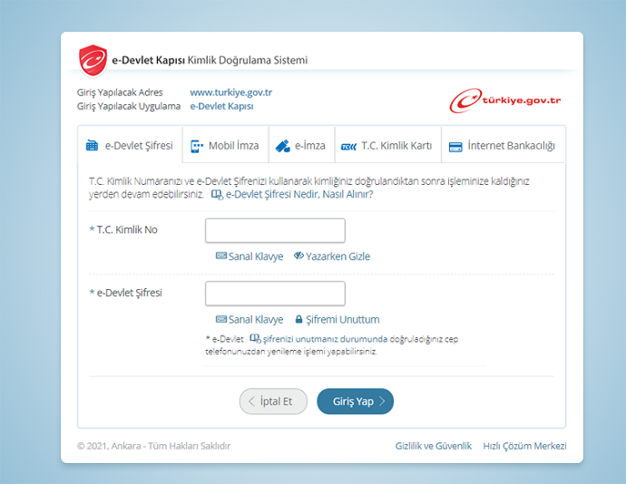 1) www.turkiye.gov.tr adresine giriş yapılır.